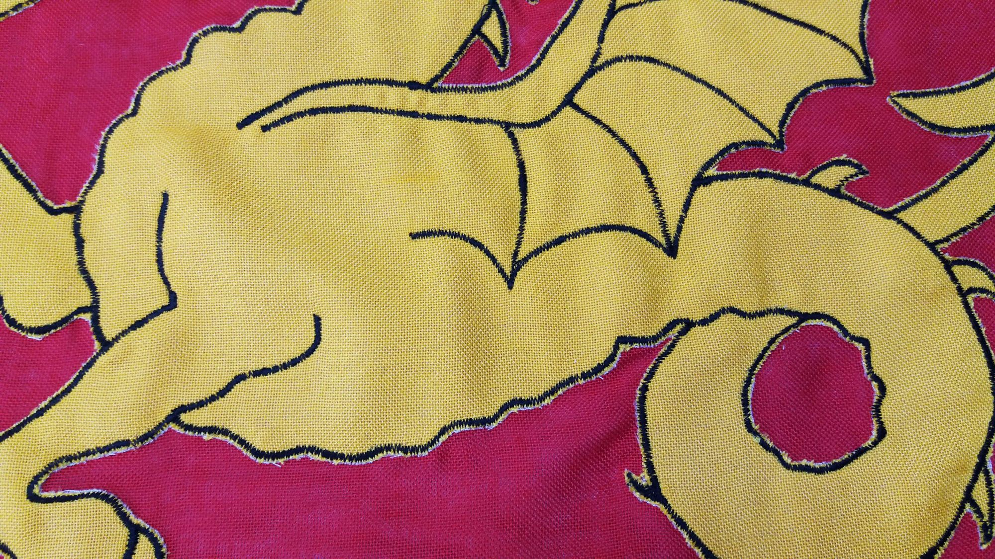 The yellow dragon aka Wyvern of Wessex is hand embroidered on both sides of flag. Flag is sewn around multiple times using UK 'COATS' manufactured bonded nylon thread. The latter has superior abrasion resistance compared to generic cotton or core spun threads.