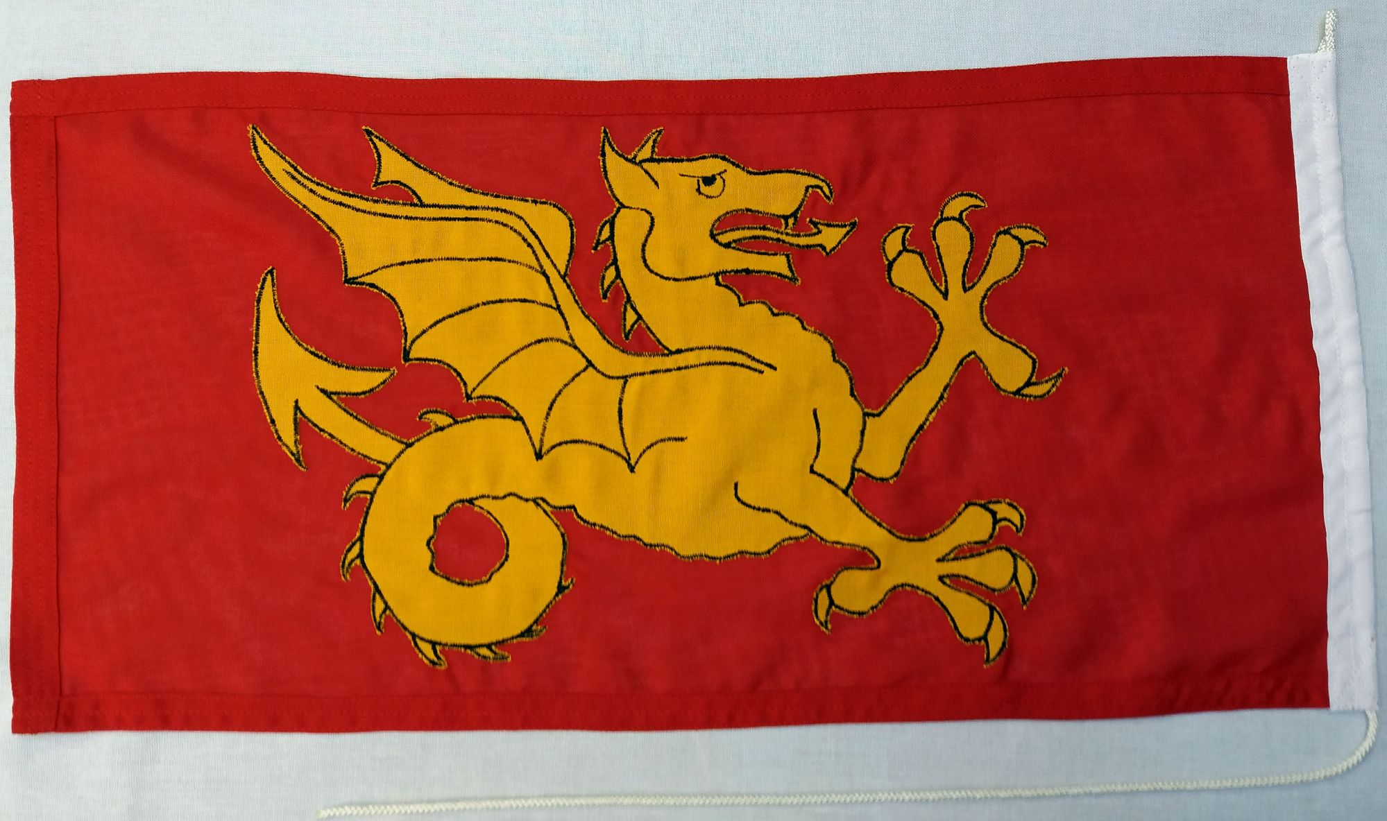 Wessex county flag yellow dragon sewn and embroidered using British Ministry of Defence approved fabric UK/SC/4767. Cotton like woven blend seaworthy flag fabric.